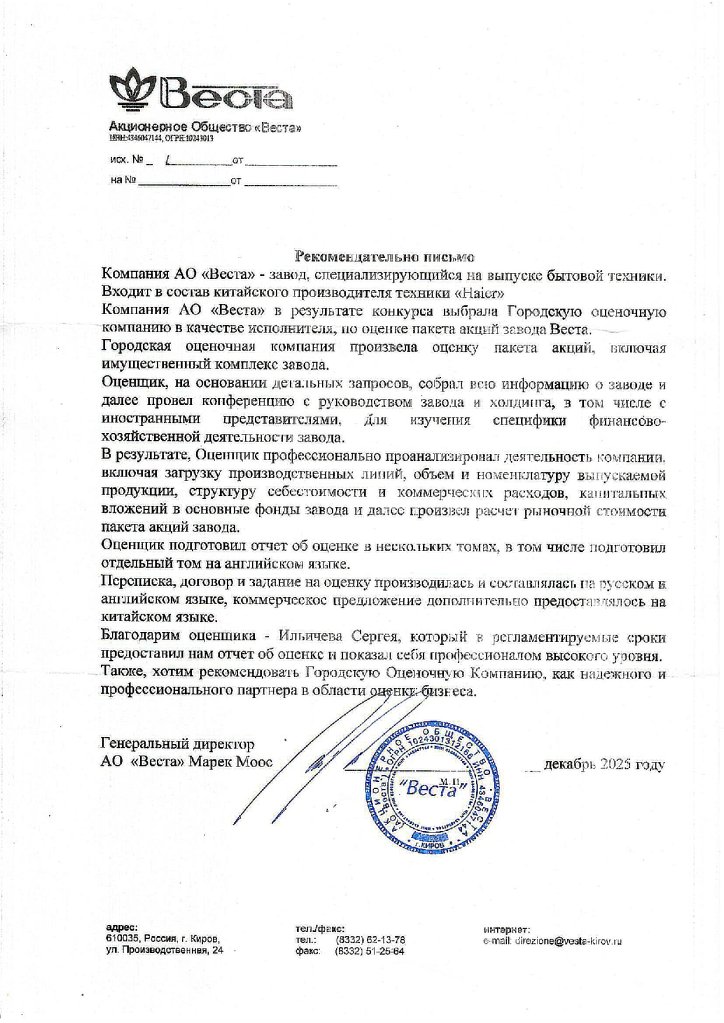 Городская Оценочная Компания несет ответственность в полном объеме за качество и сроки оказания услуг, согласно действующему законодательству и договору.
