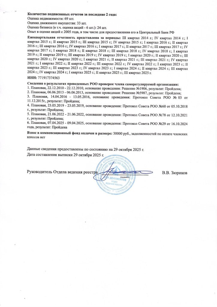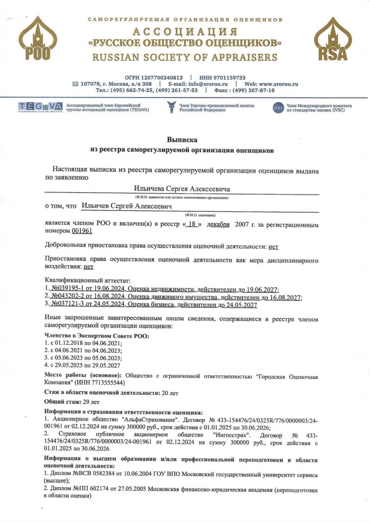 Оценщики компании являются членами СРОО, а также входят в Экспертный совет. -